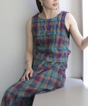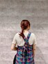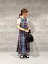 チェックエプロンビスチェとチェックフレアスカートを合わせたセットアップコーデ* 一緒に合わせるとワンピースみたいで可愛いです♩ ビスチェは暑すぎず、夏でもレイヤードをいろいろ楽しめそうです◎