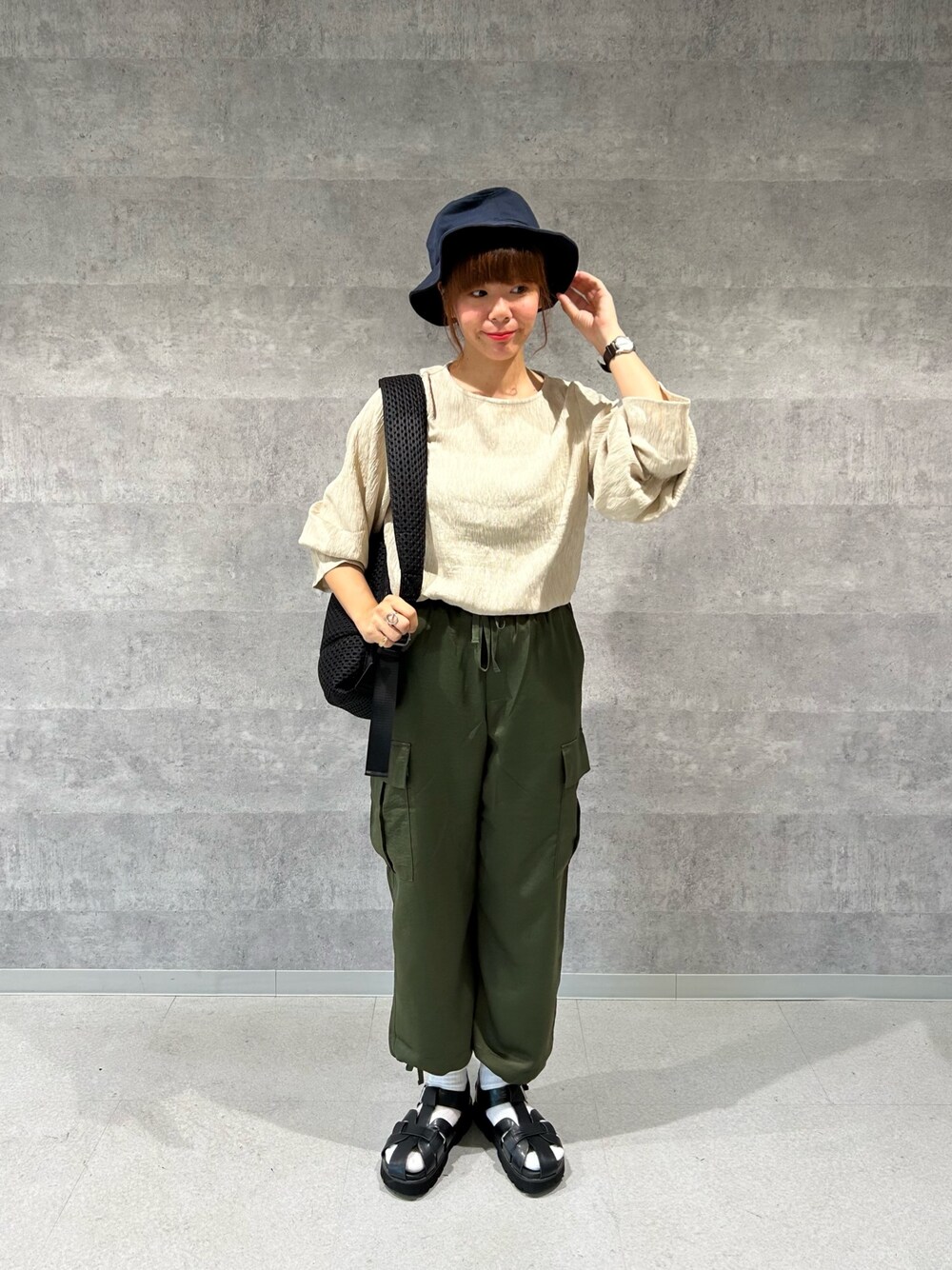 楊柳袖口フレアーブラウスを使ったカジュアルコーデ* 楊柳なので暑過ぎないので晩夏の時期からも使いやすいです。 袖口がゴムなので、気温によって袖の長さの調整しやすいのも嬉しいポイント◎
