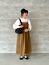 店頭でも早速人気のフロントZIPギャザーキャミワンピースを使った秋コーデ* インナーにロンTを入れても少しゆとりがあったので、スウェットやニットを着る季節も使えそうです。