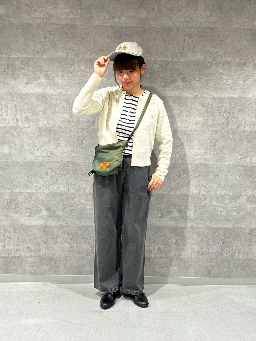 刺繍入り天竺クルーネックカーディガンを使ったカジュアルコーデ* コンパクトなサイズ感なので、着膨れせず綺麗に着れそうです◎ ホワイトは少し透け感もあって可愛いです♩