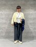 シャギーポケット付きジャケットカーディガンを使ったカジュアルコーデ* 店頭でも早速人気のカーディガンは金ボタンがついていたりディテールも凝っていてジャケット感覚で使えそうです◎