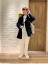 ミドル丈ピーコートを使ったモノトーンコーデ* タイトすぎないサイズ感なので中も着込みやすく、ミドル丈なので背丈問わずバランス良く着れそうです◎