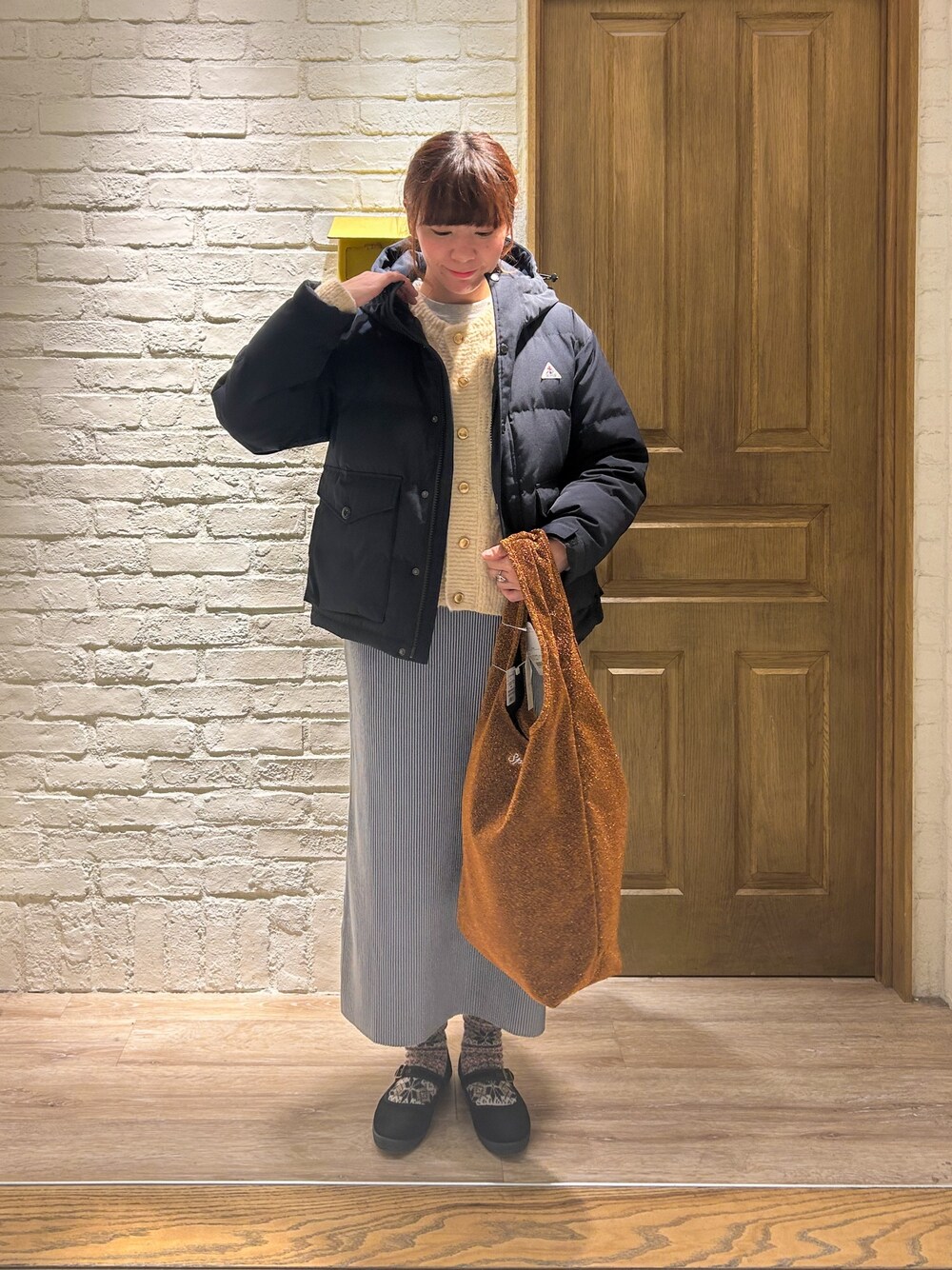 GEVACOのタッサーショートダウンを使った冬コーデ* 厚手なニットも着やすいサイズ感なので真冬も重宝しそうです◎