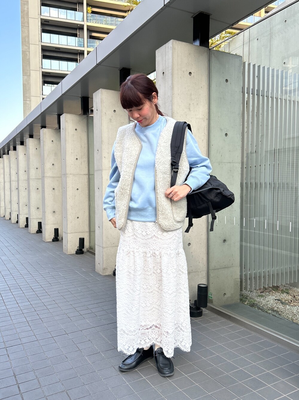 FR刺繍起毛スウェットを使ったレイヤードコーデ* スウェットは裏起毛なのでひと足お先に春コーデが出来そうです◎