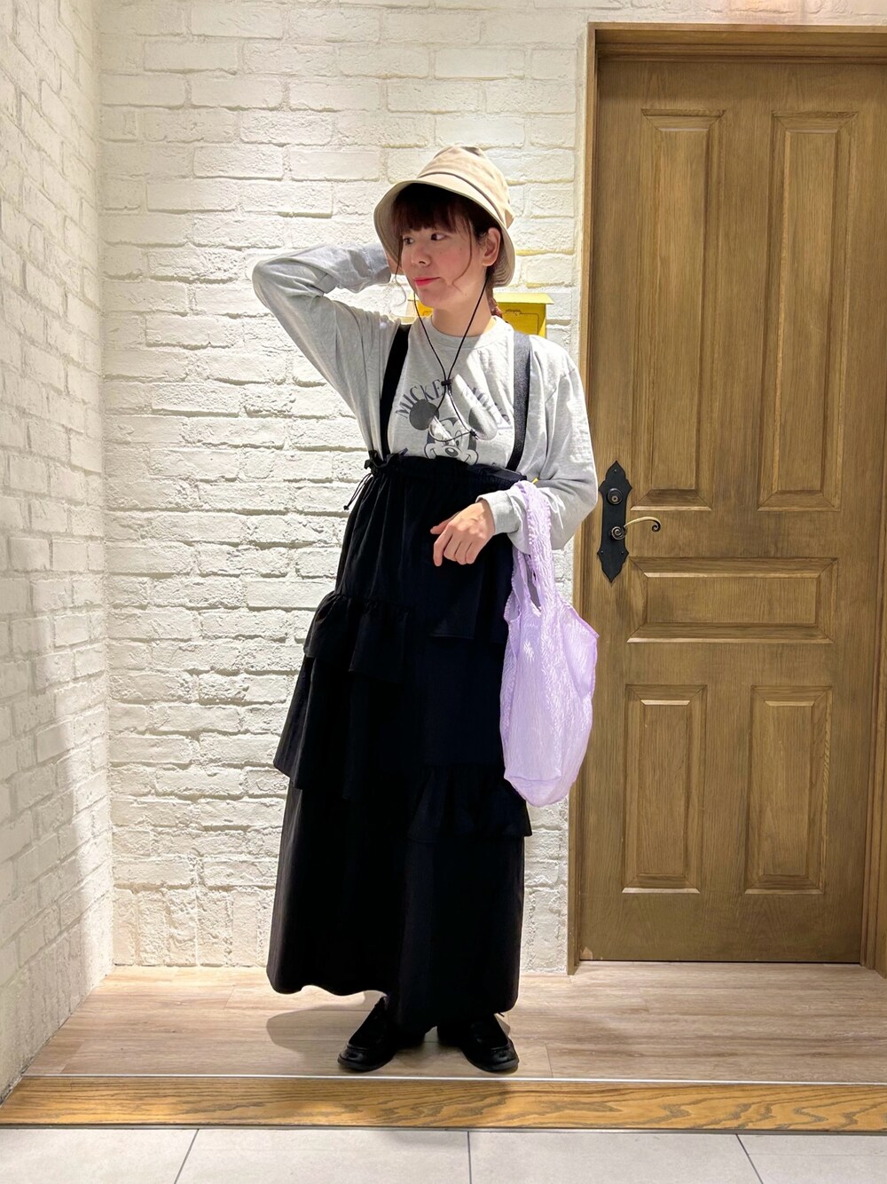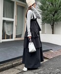アシメティアードジャンスカを使ったユニセックスコーデ* サスペンダー部分はボタンで長さを3段階で変えれたり、ウエストもドローコードで絞れるのでサイズ調整がしやすいので体格を選ばず使えそうです◎