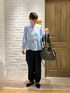 シアー前開きブラウスを使った春コーデ* サイズ感も大きすぎないので体型問わず使えます◎ 程よい透け感が今っぽく羽織として着た時もキレイです♩