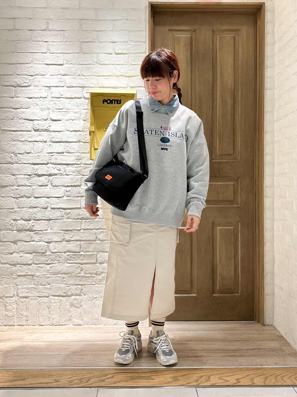 GOOD ROCK SPEEDの別注NYCスウェットを使ったレイヤードコーデ* オーバーサイズなのでレイヤードもしやすくカジュアルコーデも作りやすいです◎