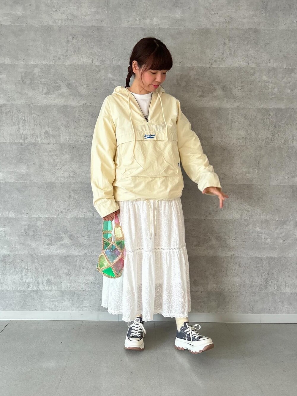 ジャックパーセルのアノラックパーカーを使ったユニセックスコーデ* 女性でも着やすいサイズ感で裾にドローコードが付いている分小柄な方も着やすそうです◎