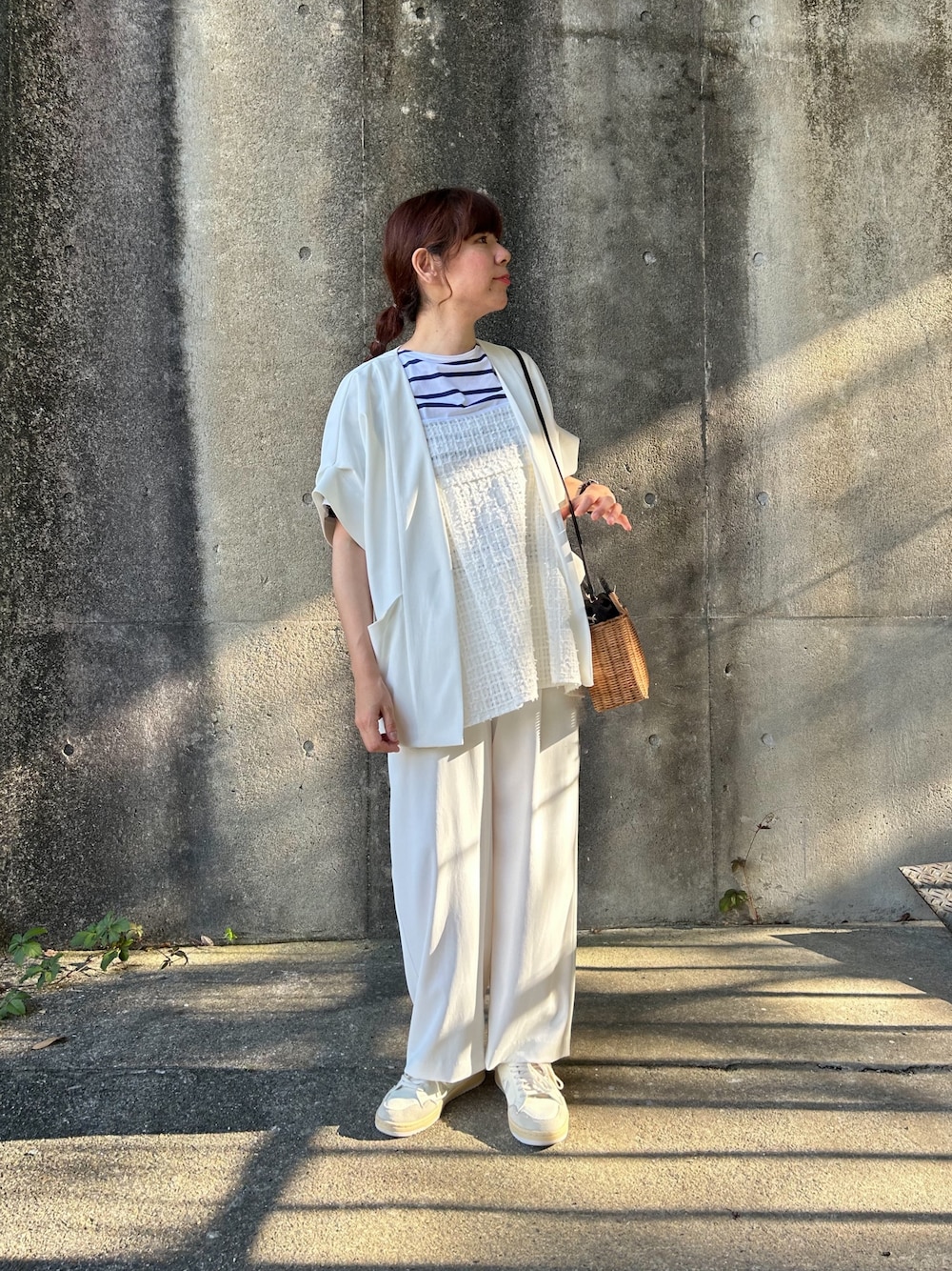 ツイルフレンチジャケットを使った淡色コーデ* コンパクトすぎないサイズ感なので綺麗めになりすぎない分 オンオフ問わず使えそうです◎ また、シワになりにくいので持ち運びもしやすそうです。 ツイルイージータックパンツは透け感もあまりなく、サイズも小さすぎないので楽に履けました*