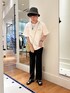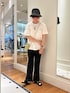 ケープハイツ別注リフレクターTシャツを使ったユニセックスコーデ* レディースがサイズMを着ると程よくオーバーサイズなので一枚着でもレイヤードでもどっちも対応出来そうです◎ スリットパンツは38サイズを履いてます。 フレアでも細見え効果があるのでヘビロテで使いたくなりそうです*