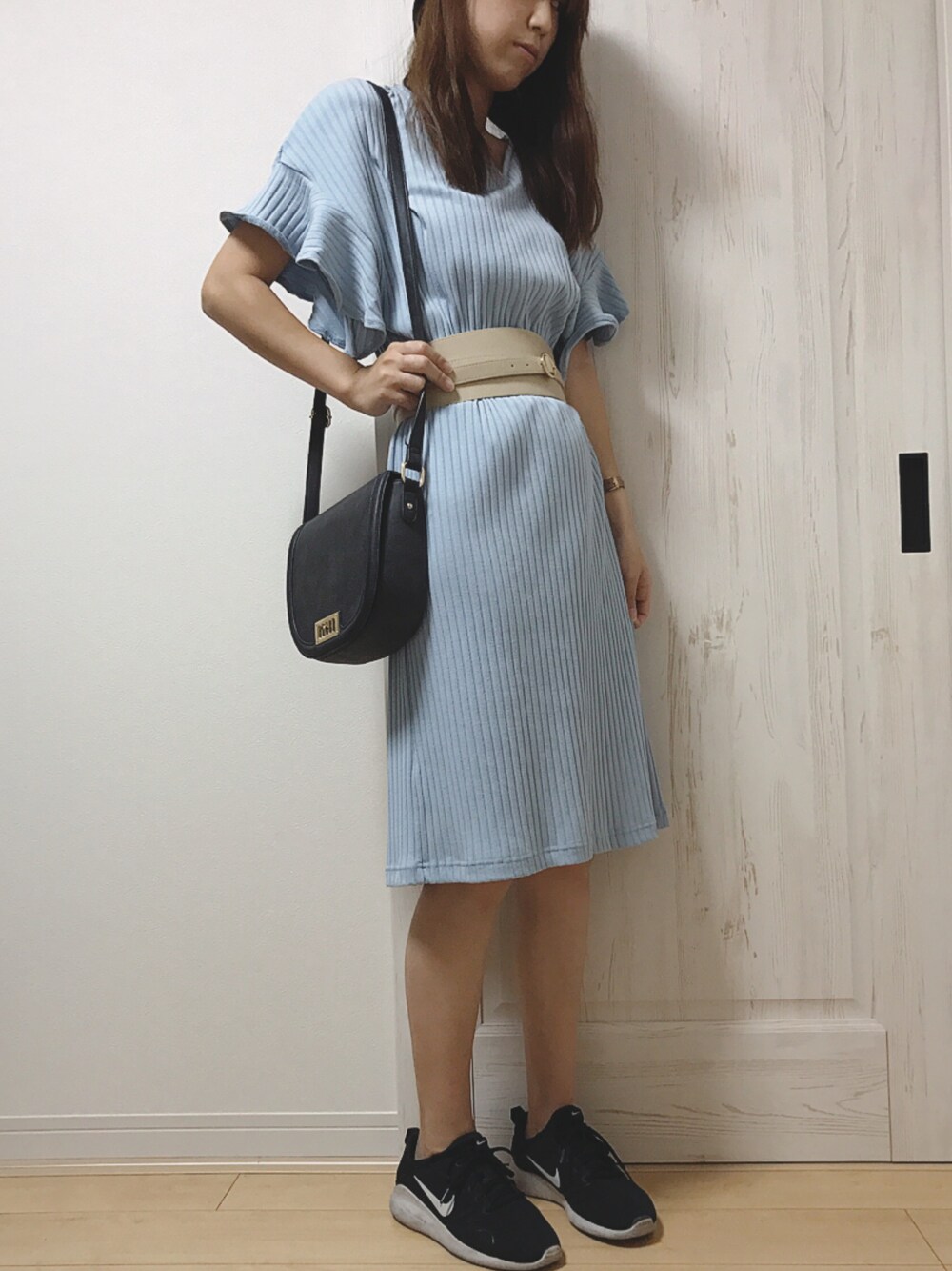 ARI。のワンピース「KBF フリルスリーブ2WAYワンピース」を使ったコーディネート