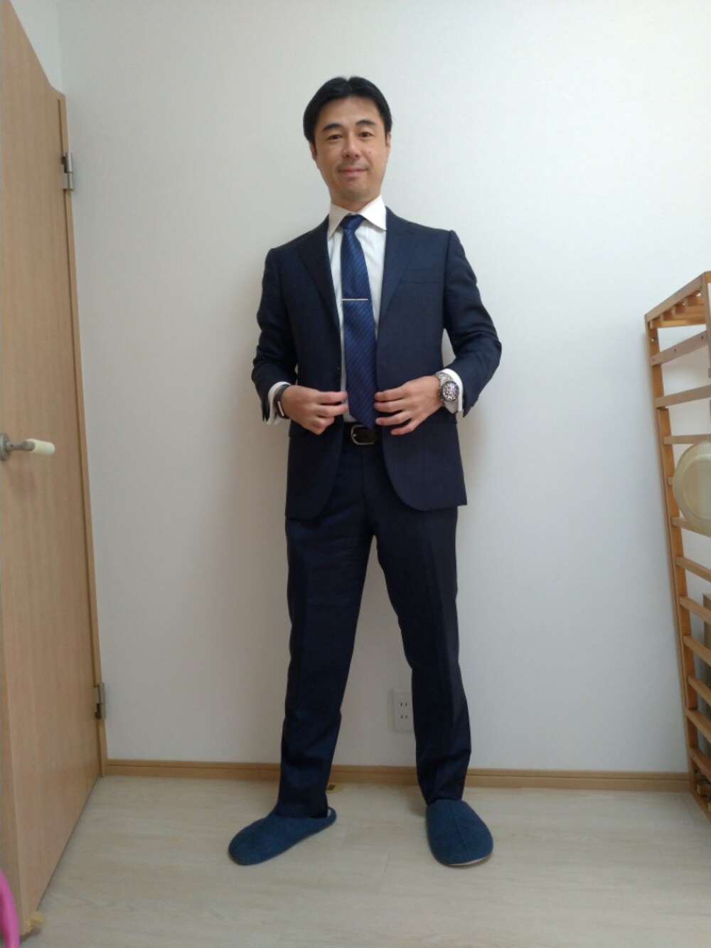 おはようございます! いつも「いいね!」、「お気に入り」、「フォロー」ありがとうございます! 今日は、まさかの7時10分起き。いつもより40分以上遅く起きてしまった(涙)。 15分で準備して、学校に行こうとしている小3娘に渋々撮ってもらいました(笑) 今日のポイントは、ネイビー&ブルーです!カフスリンクもブルーで統一してます。 今日は後輩と差し忘年会第1弾。 今日も終わってないのに年内もう1回飲みに行く予定になってます(笑) 今日も1日がんばりましょう!