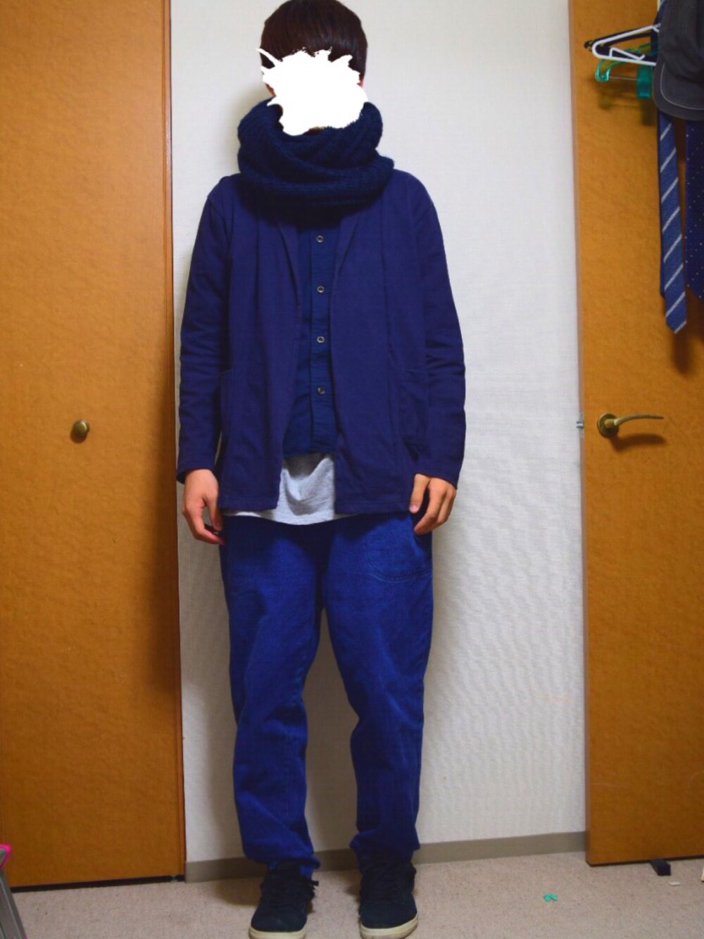 初投稿です。お手柔らかにお願いします🤗 全体をネイビー基調にまとめてみました。 ネイビーだけでは品がなくなるので、ロング丈のグレーのTシャツを中に着て、少し外してみました あと、靴下にワンポイントとして赤色を入れたのですが、歩きながらでないとわからないですね笑😜 このオールコーデで20000円以下です。笑 プチプラコーデというやつですね。。。