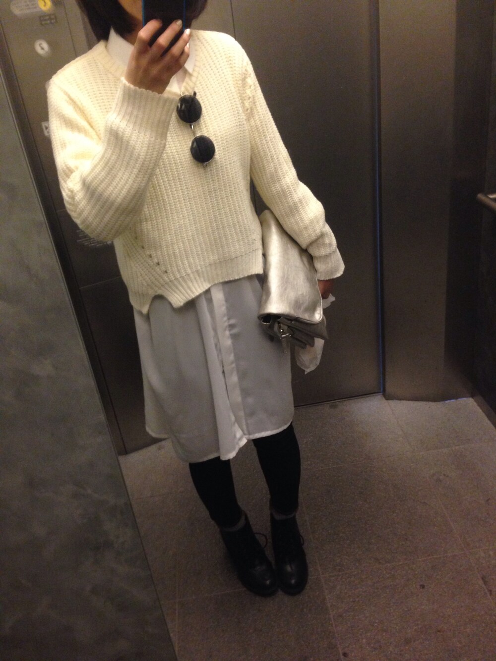 GARMENTSEVEN初めて買ったけどこのロングシャツ可愛い(^-^)/ シルバーのクラッチは去年のAWmousyお気に入り☆
