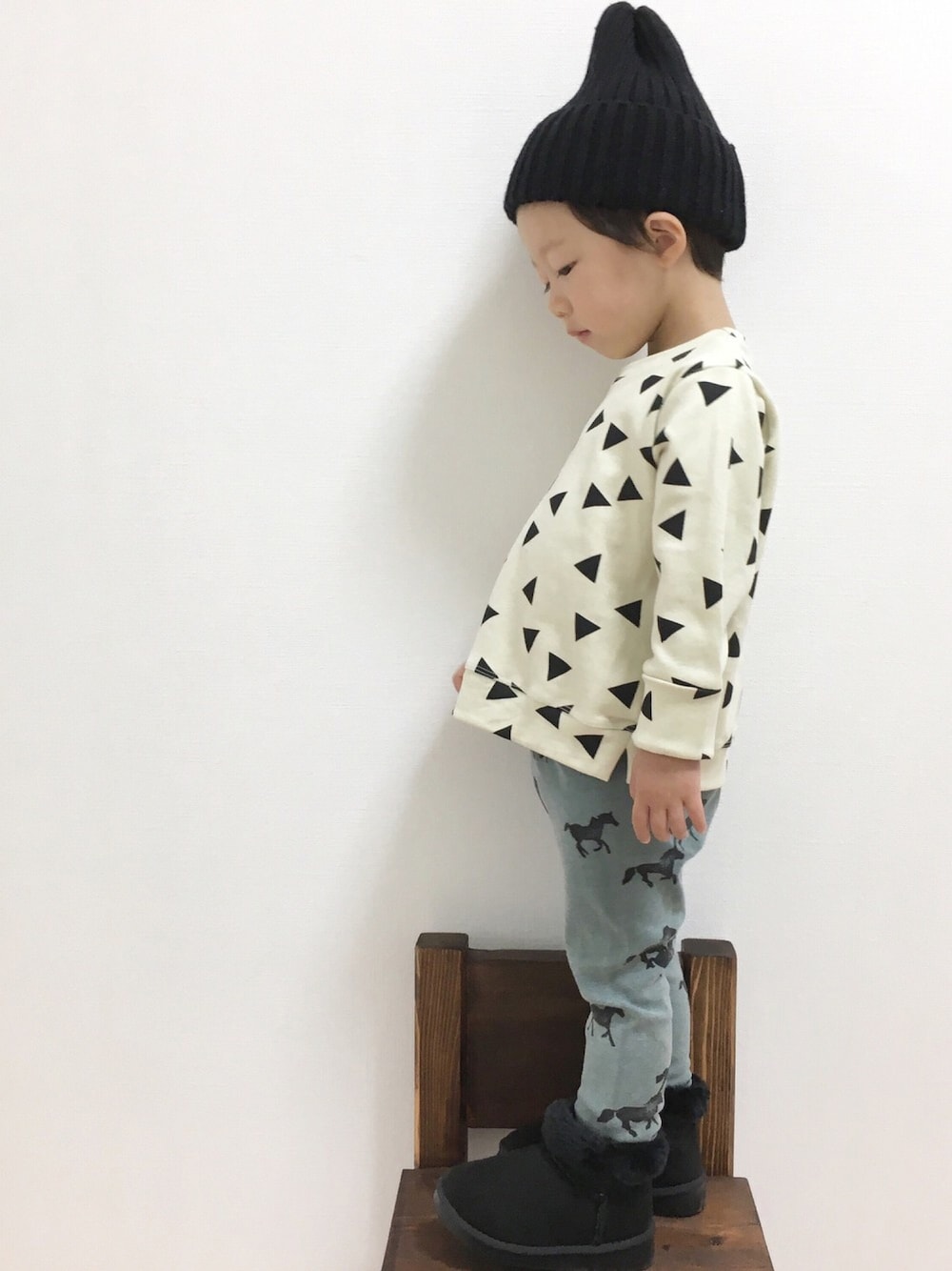 今日 の 息子服 ▶︎ ▶︎ ▶︎ 柄 on 柄 に してみたよ ーー ( ˶˙º̬˙˶ )୨