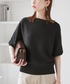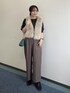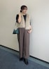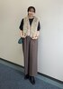 人気のドルマン袖トップスにファーベストを合わせたコーディネート。ファーが着映えするスタイリング。 ワンポイントにカラーバッグを取り入れました。