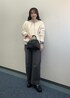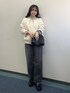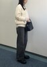 ニットの中にフリルシャツをレイヤードして防寒+おしゃれ度アップ。キラキラのデニムと合わせて華やかな印象にしました。