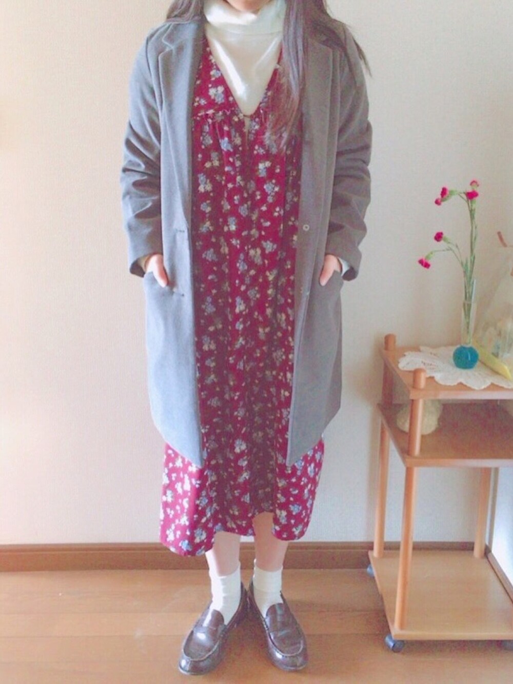 普段学校に履いていってるローファー、活躍してますしてます^^ 花柄×ワンピースもう言うことなし🤢💗