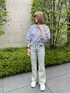 バックレースアップがポイントのシャツにさり気ないストーン付きデニムが可愛い!