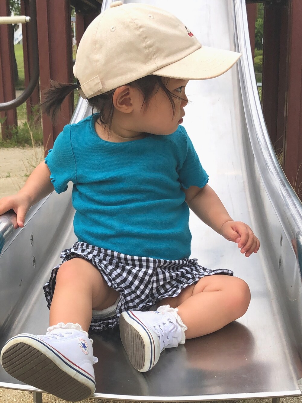 同じコーディネートは載ってるけど 髪型を変えて帽子を足すだけで カジュアルな感じになる👒 スポーツサンダルとかでも可愛い!👑 子どもってずーっと同じことやるから 可愛いんだけど大変🙊 すべり台に一人で登って降りるを 永遠やってました🌀 ぜひフォローよろしくお願いします🐿