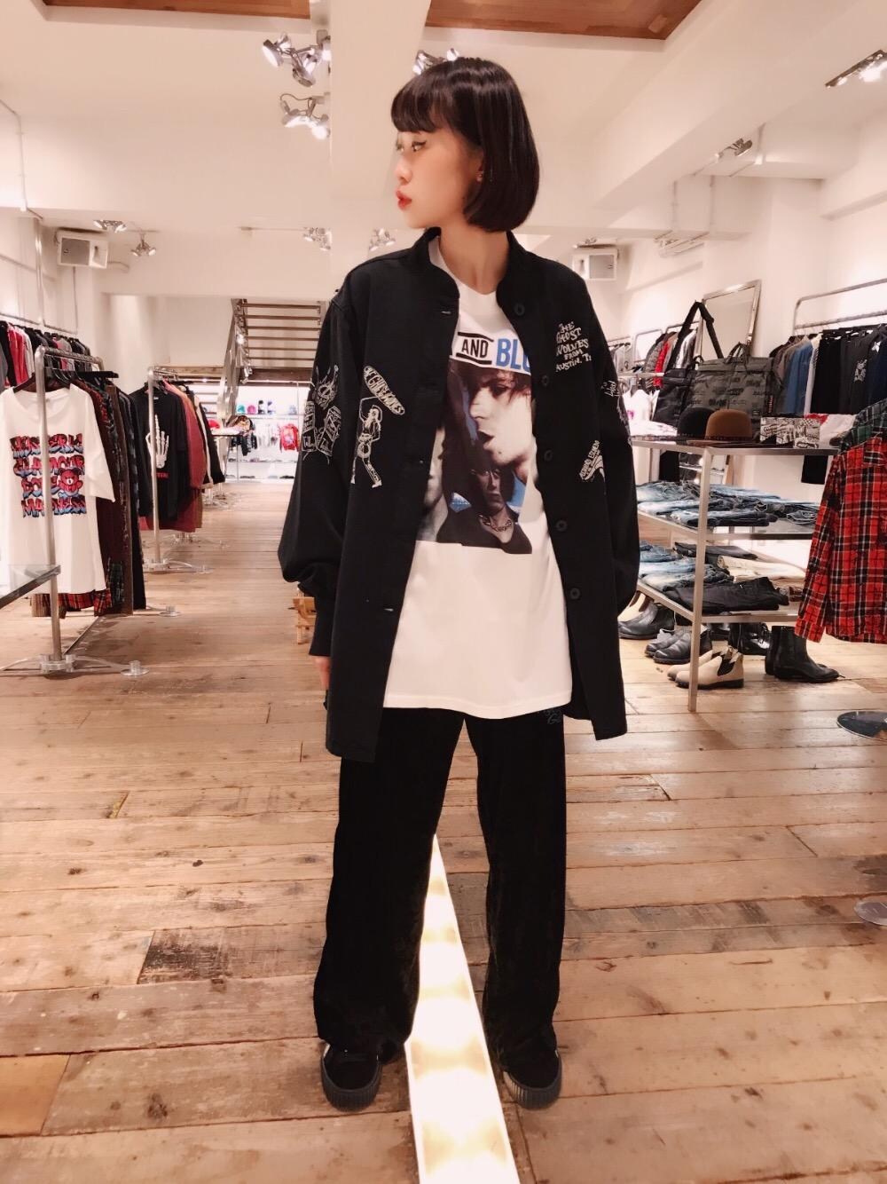 mze(HYSTERIC GLAMOUR札幌ステラプレイス店)のシャツ/ブラウス「THE GHOST WOLVES/WITCHES MIX プリント スタンドカラーAラインシャツ」を使ったコーディネート