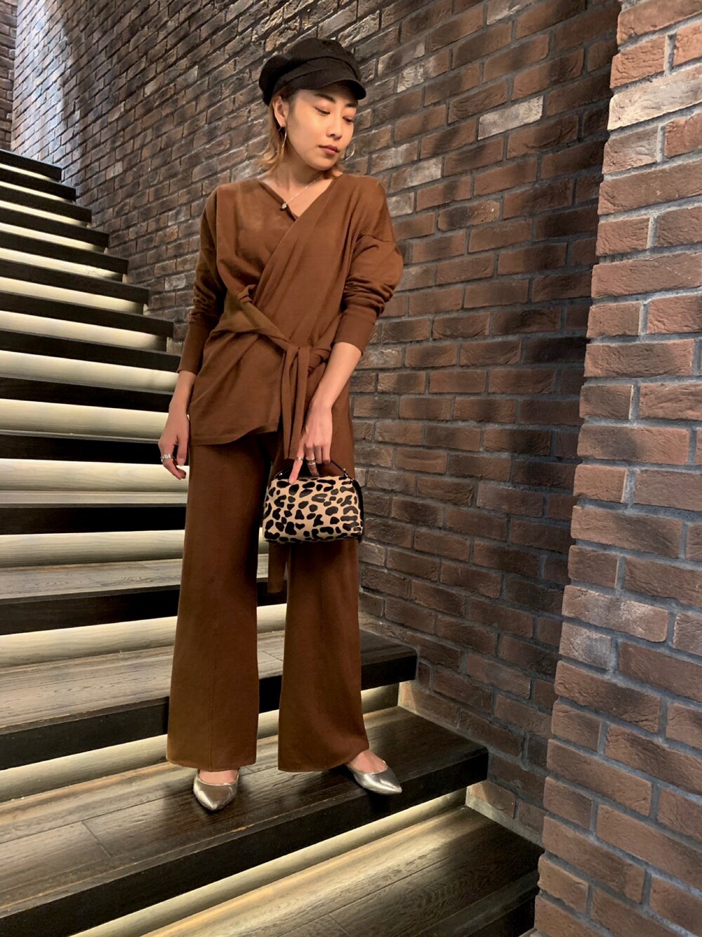 秋のニットアップスタイル☆ ラクチンだけどおしゃれなニットアップは ブラウンをチョイスして秋っぽく♪