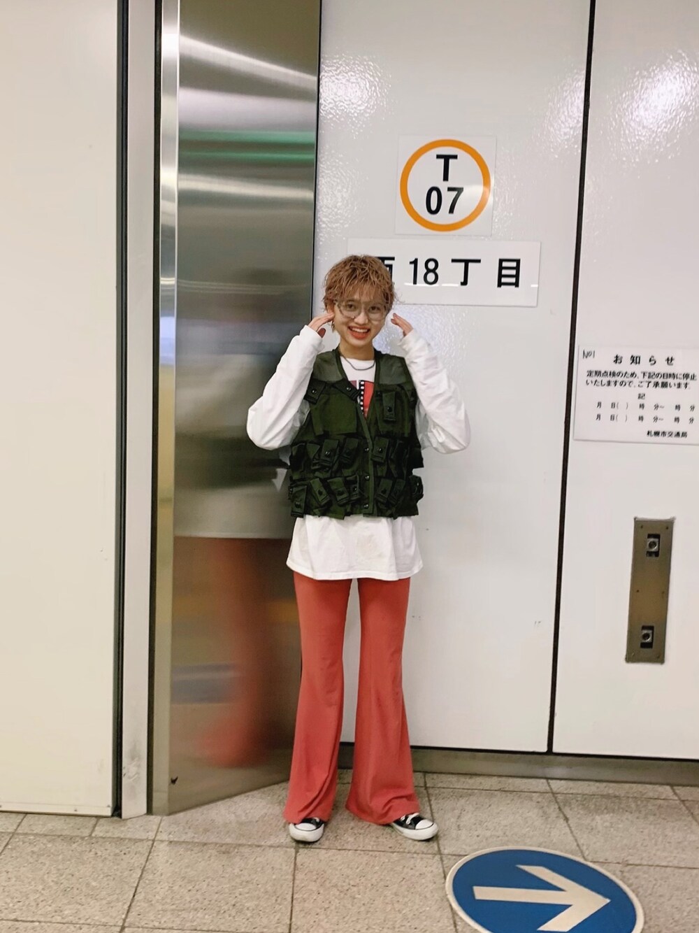 雨降りで外で撮れなかった日の📸♡ 勤めている札幌の美容室の最寄り駅 西18丁目 😙👏 この日は彼さんの軍ものベストを拝借!