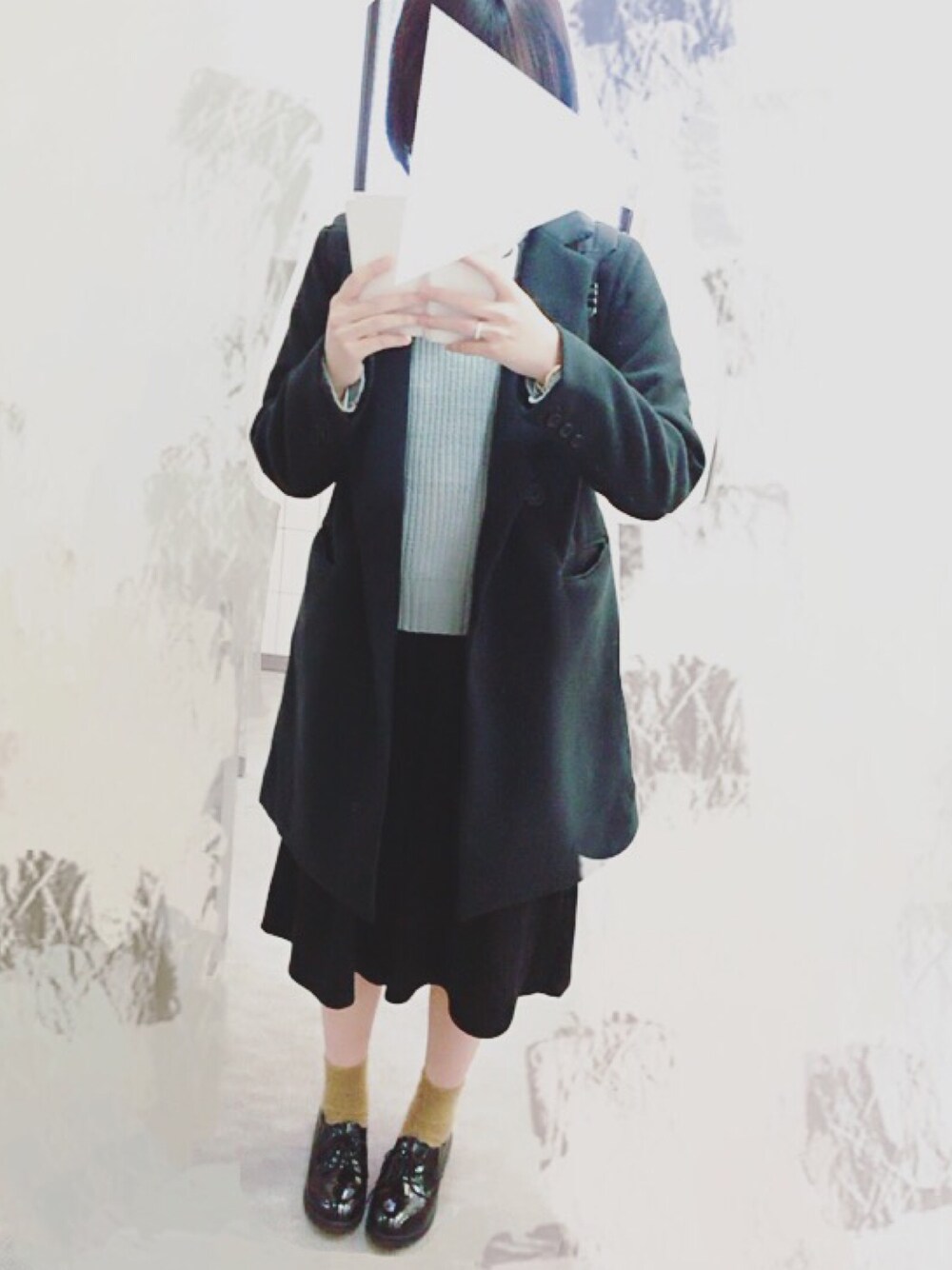 今回は モノトーンコーデの差し色に キャメルの靴下を使いました。 前回と 似たような色の組み合わせですね。