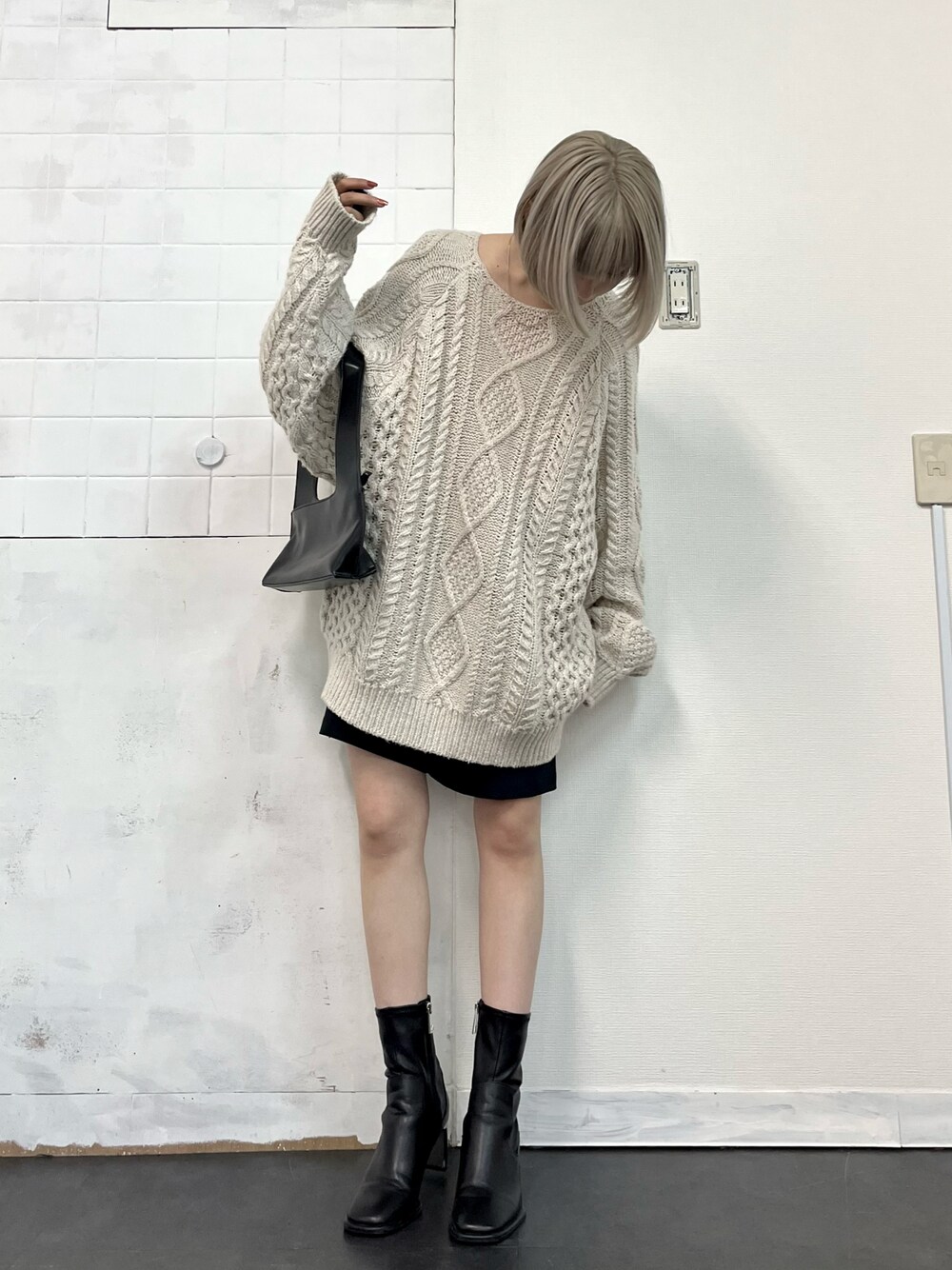 Hinata.のニット/セーター「FOG ESSENTIALS/エッセンシャルズ FOG 22FW CABLE KNIT CREW NECK ケーブルニット」を使ったコーディネート