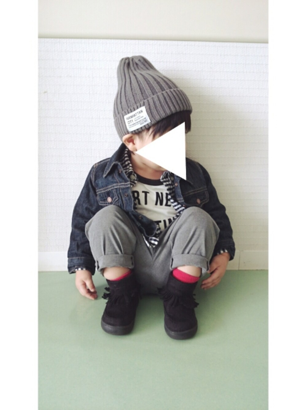 ニット帽 : しまむら Gジャン : GAP シャツ : 無印良品 ブーツ : 西松屋