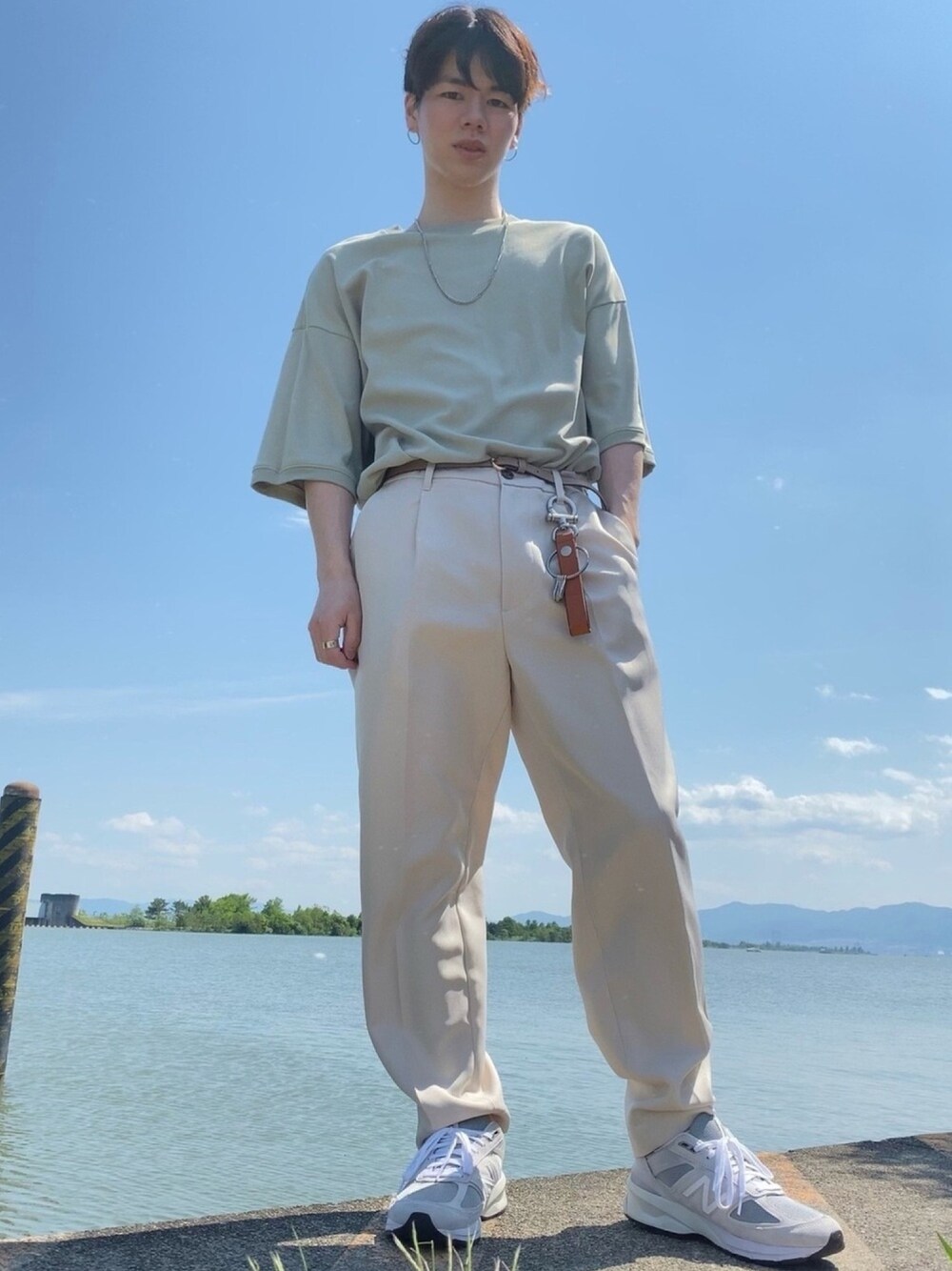 いつも見て頂きありがとうございます😊 いいね👍 お気に入り💜 フォロー⭐ 凄く励みになってます! 琵琶湖の前で撮ってもらったコーデです☀️ monkey timeのTシャツ初めて着ました! 何より色が可愛すぎません?🥰 ケリーってあんまり耳にしないんですけど、この淡いグリーンがたまらなく最高です!! 淡いカラーって、白パンツに合わせるのが1番やと個人的に思ってます✌️笑 あ、でもアイスウォッシュのデニムとも合わせてみたいな!って今思いつきました😌 無地のTシャツとパンツで面白くないなって思ったので、キーリング・ネックレス・ピアス・リングなどのアクセサリーで遊んでます😎 もしこの投稿が気に入って頂けたら、いいね・お気に入りお願いします💚 フォロー・コメントもお待ちしております😆 Instagramも頑張っていこうと思いますので、チェックしてみて下さい😊 DMもお待ちしております🤘 Instagram → hrt_cd0821