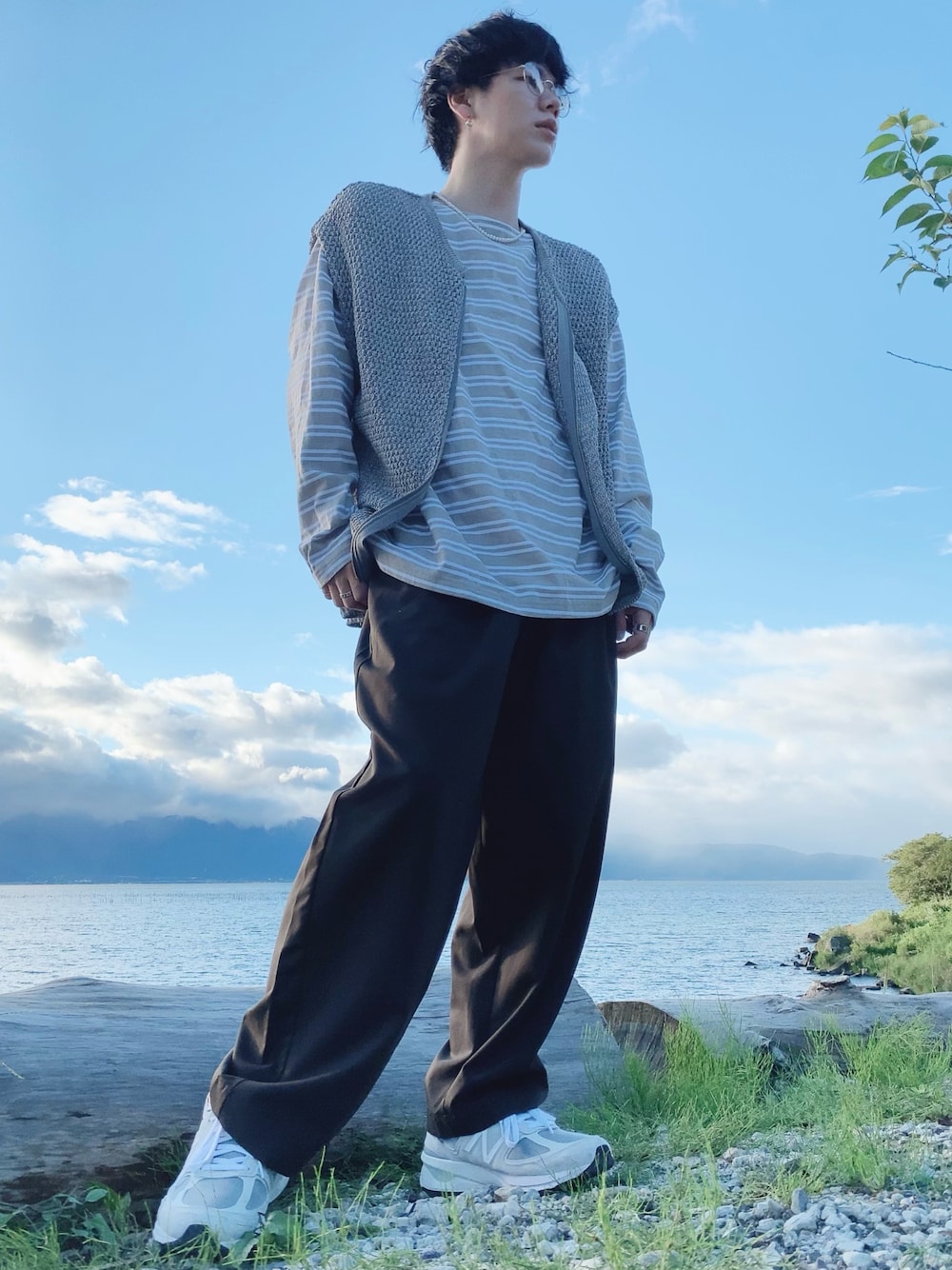 いつも見て頂きありがとうございます😊 いいね👍 お気に入り💜 フォロー⭐ 凄く励みになってます! 琵琶湖の前で撮ってもらったコーデです☀️ 大好きなベストを使い回した、コーディネートを連続で投稿してます😆笑 前にもボーダー×ベストのコーディネートを投稿してるんですけど、今回はベージュのボーダーで合わせてみました! トップスをベージュ系にしたので、パンツもブラウンにして統一感を出してみました☺️ 珍しくサングラスではなくメガネをかけて、いつもと違う雰囲気を作ってみました✌️ 少し、賢そうに見えますか??🤣笑 もしこの投稿が気に入って頂けたら、いいね・お気に入りお願いします💚 フォロー・コメントもお待ちしております😆 Instagramも頑張っていこうと思いますので、チェックしてみて下さい😊 DMもお待ちしております🤘 Instagram → hrt_cd0821