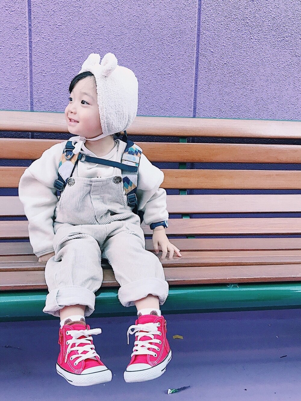 RUMARI SHOPのくまさんボネットに合わせて♡全身ベージュコーデ