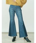 形が可愛すぎるニット💛ショートニットはハイウェイストのボトムスと合わせるのがマスト!!外側に切り替えのあるEVRISのフレアデニムは脚長効果絶大です◎