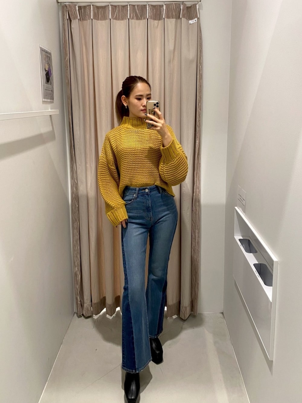 本庄 彩葵のニット/セーター「タートルクロップドニットTOPS」を使ったコーディネート