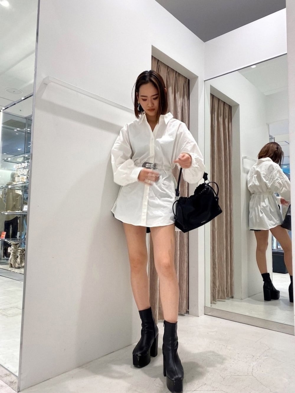 本庄 彩葵のシャツ/ブラウス「ギャザースリーブオーバーシャツ」を使ったコーディネート
