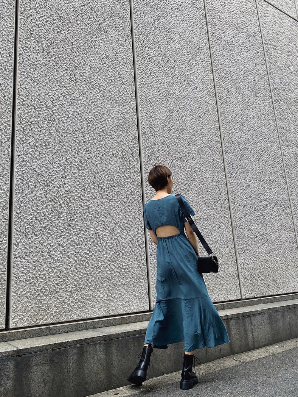 マーメイド型でネック部分はスクエアでデコルテラインを綺麗に見せてくれる、レディライクな雰囲気もありながら、深いスリットと、程よい肌見せ感のあるエッジの効いたワンピース♡あえてレースブーツで合わせてトレンド感を出してみました☺︎☺︎