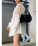 裾に向けて広がるラインなので、気になるウエストやヒップ、腰まわりのラインを拾わず体型カバー出来るワンピース♡ ウエストを絞らないシルエットなのでリラックス感を演出できるのも◎ 小物はブラックで揃えて統一感あるトレンドコーデ♪ instagram▶︎@evris_saki @sappo_tk