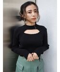本庄 彩葵のニット/セーター「フロントオープンボトルネックニットトップス」を使ったコーディネート