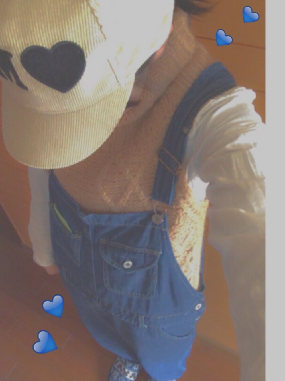 オーバーオール💙💙 キャップ💛💛 スニーカー💚💚 バックはクラッチにしてそこだけ女の子っぽく✔