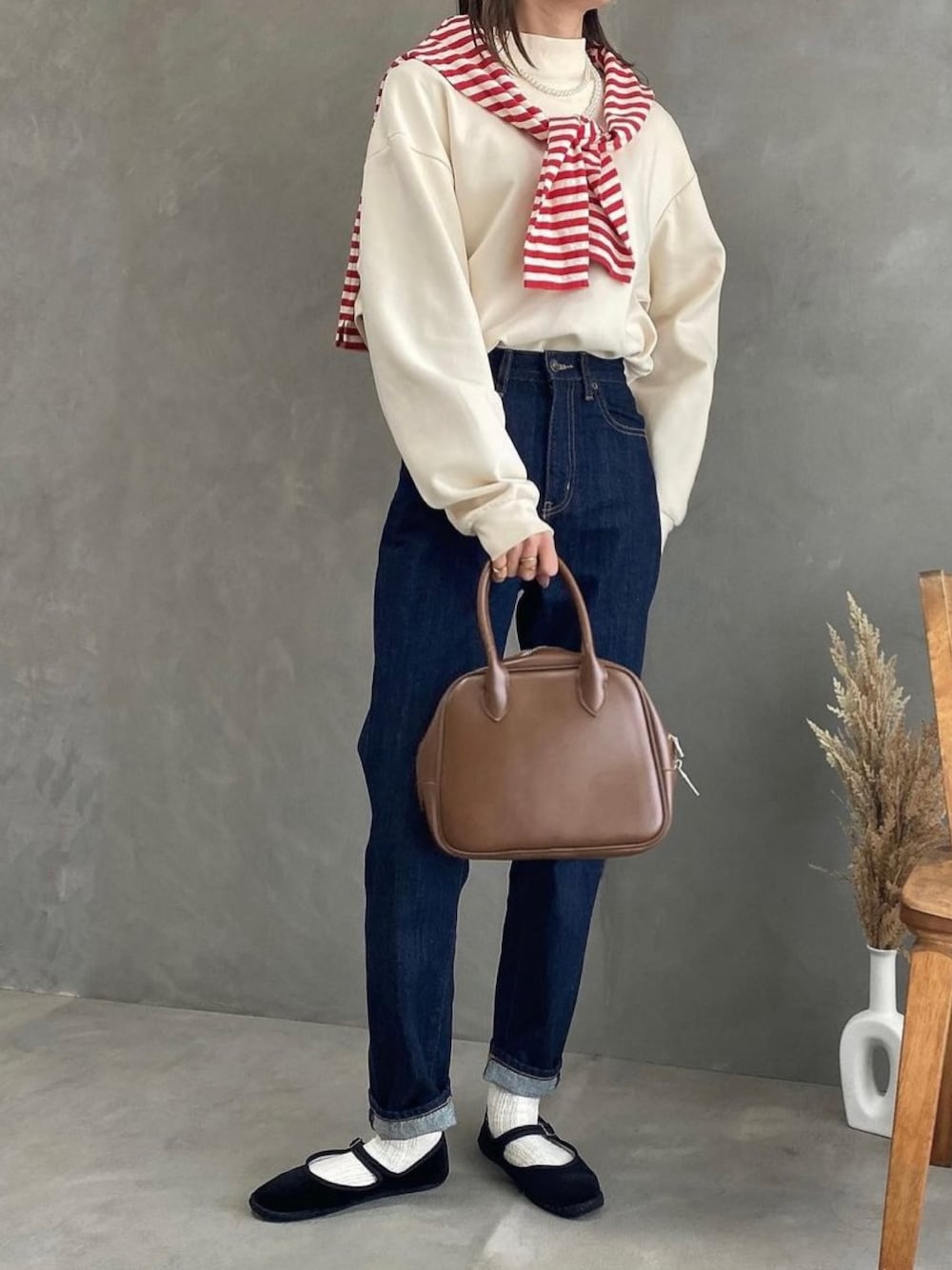 カジュアル春コーデ🌸 シンプルすぎるなぁと思うときは ボーダーを肩に巻く事が多いです🤞 ------------------------------------- Instagram: @hsr.ot__ Twitter: @hsr_ot__ -------------------------------------