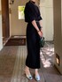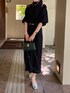 おと.のワンピース「MEDI OFF SHOULDER PUFF SLEEVE DRESS」を使ったコーディネート