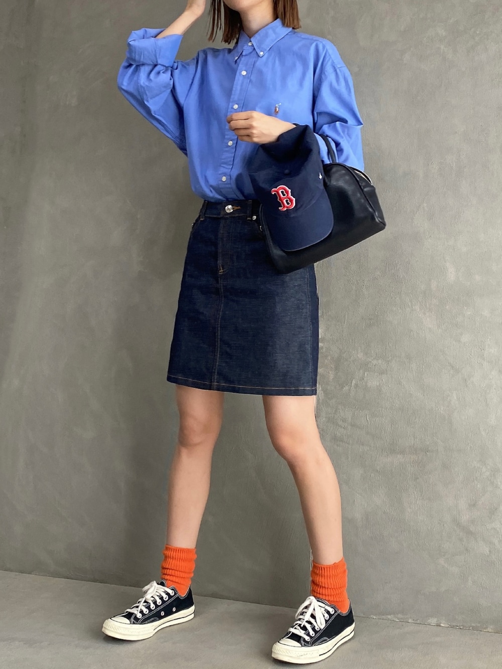 古着のブルーシャツにデニムスカートで ワントーンコーデ🐳 ------------------------------------- Instagram: @hsr.ot__ Twitter: @hsr_ot__ -------------------------------------