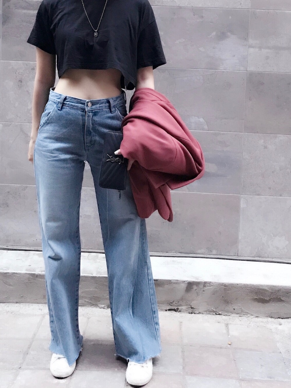 Key points for me when choosing the right cropped wide leg denim are styles that improve your thighs and show the ankle or have the ideal length. When styling this length, even when its more of a slim fit style, is making sure skin is on show around the ankle or top of the foot. This helps to exagerate the flare, makes your ankles/feet look slim in comparison, and lengthens the overall look. hsunxxi@instagram