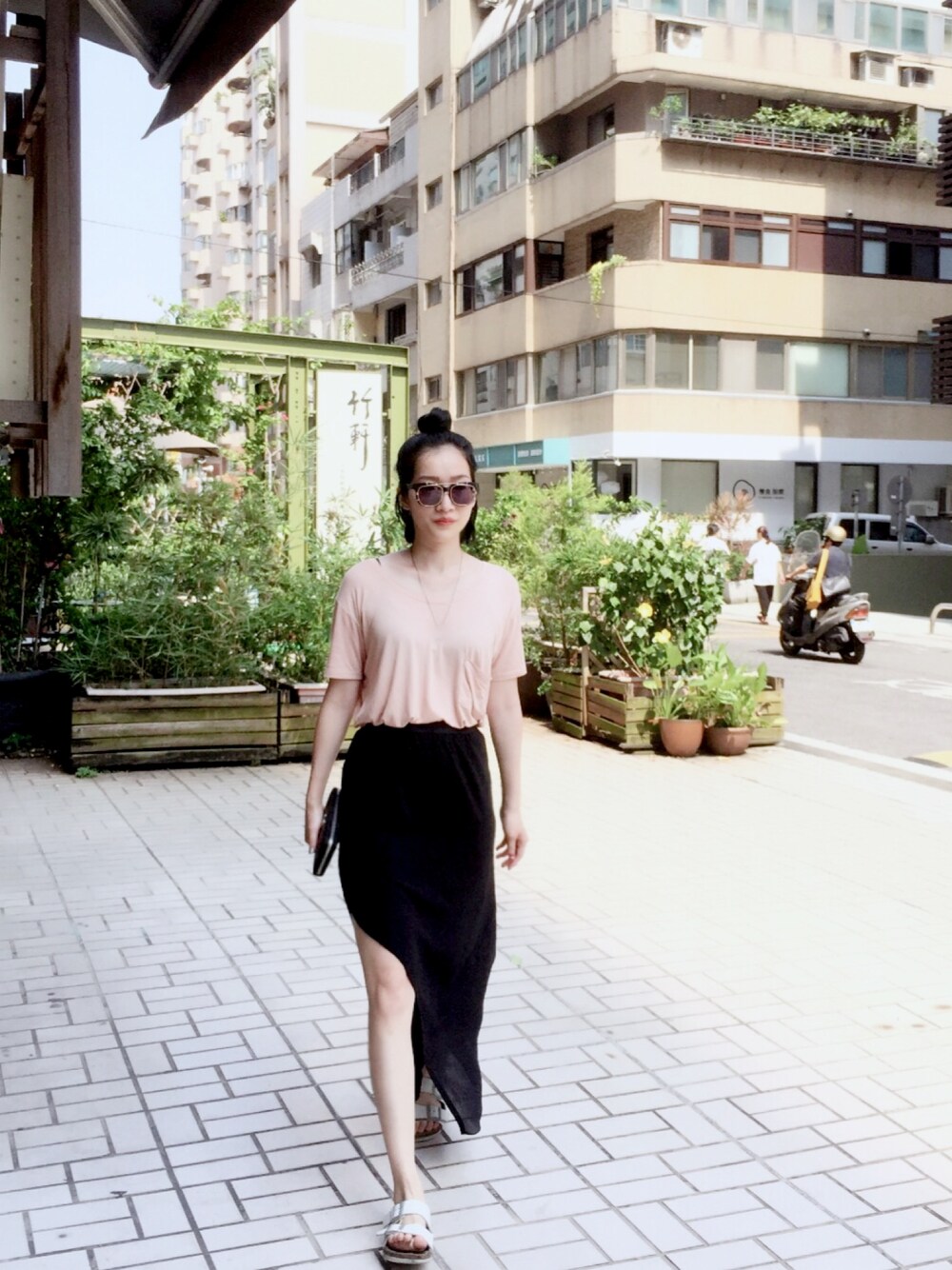 設計款裙子,小露性感 搭配輕便上衣、鞋子 讓整天顯休閒感 hsunxxi @ Instagram