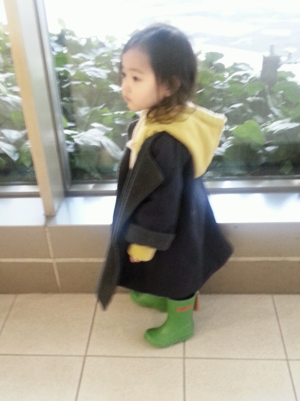 イエロー系のパーカー、グレー系のスカートを着用したキッズの春コーディネートの1枚目の写真
