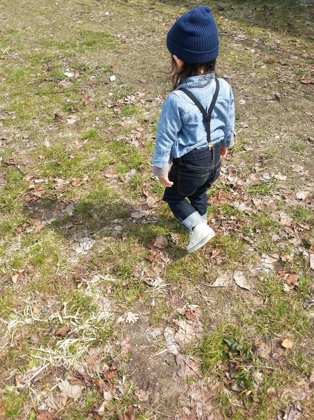 ブラック系のデニムパンツ、ブルー系のシャツ/ブラウスを着用したキッズの春コーディネートの1枚目の写真