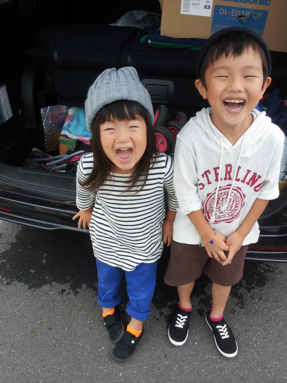 妹 ワンピース:無印良品 パンツ:H&M 靴:BEAMS 兄 パーカー:wego パンツ:スキップランド 靴:GU ワンピースだったのに、チュニック丈に…。 成長したのー、バカ笑いする娘よ。。