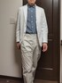 白ジャケット×白パンツにリネンシャツを効かせたスタイル