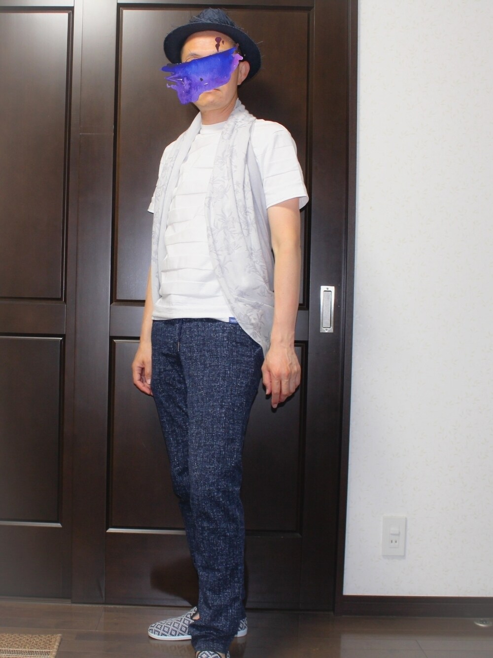 ストールアレンジ ジレ風コーデ ホワイト×ネイビー編 これからの時期も比較的トライしやすそうです。